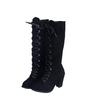 Autumn Women Long Boots Shoes Fashion Vintage Lace-up Boots Women Round Cowboy High Heels Booties Shoes Woman Botas Mujer