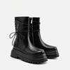 Biker Leather Shoes for Women Mid Calf Footwear Black Ladies Boots Half High Platform Cosplay New in Trend Chic and Elegant