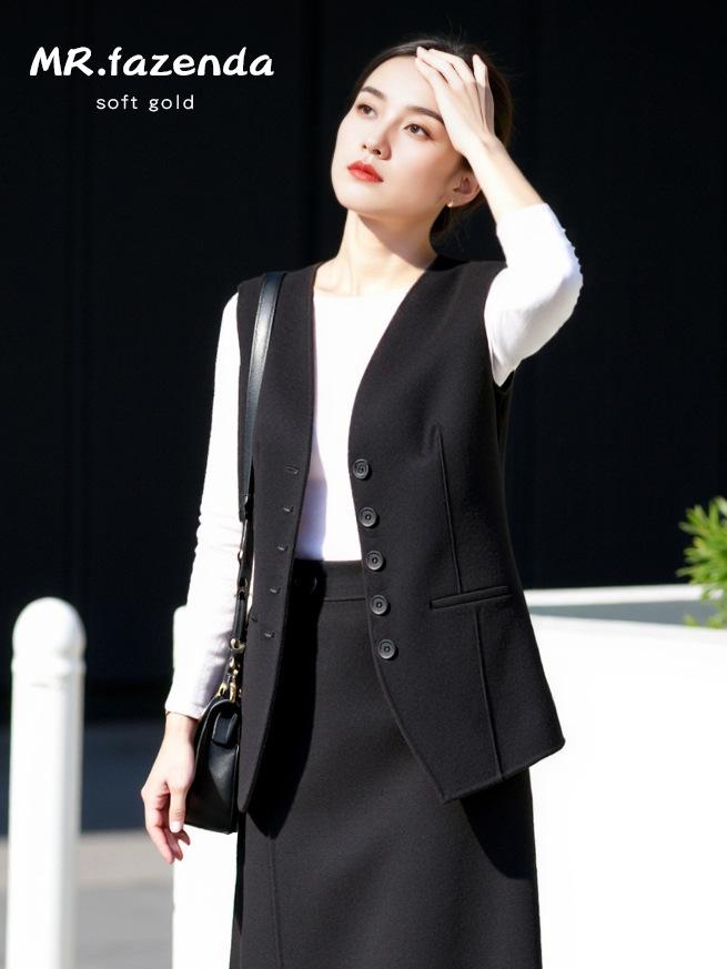 Women's V-neck Wool Melton Lambswool Waistcoat - Autumn/Winter Old Money Style