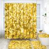 Sparkling Golden Red Shower Curtain Set with Non-Slip Rugs Toilet Lid Cover and Bath Mat Glitter Shower Curtain Bathroom Decor