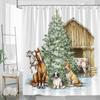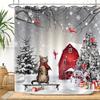 Winter Farm Shower Curtain Country Barn Wreath Horses Green Pine Tree Red Bird Snow Fence Vintage Rustic Happy New Year Holiday