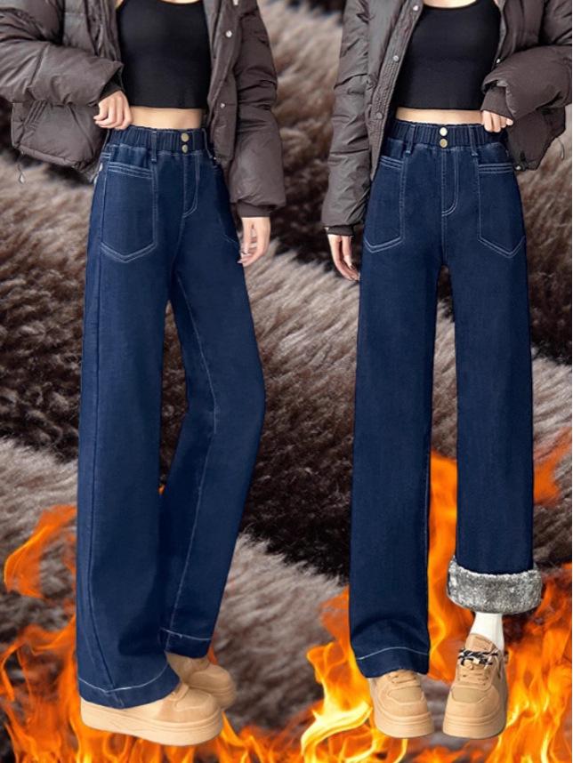 Vstupte do pohodlí a stylu s těmito dámskými širokými džíny s vysokým pasem.. Tyto džíny, odborně vyrobené z měkkého bavlněného strečového denimu, mají hřejivou fleecovou podšívku, díky čemuž jsou ideální do chladnějšího počasí.. Navrženy s vysokým pasem, poskytují lichotivou siluetu a zároveň nabízejí sportovní vzhled.. Všestranný denimový materiál zajišťuje odolnost a snadné kombinování s různými topy pro šik, ležérní outfit.