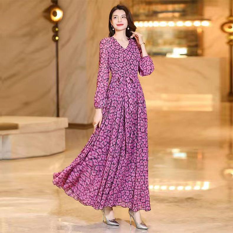 2025 Light Luxury Floral Slimming Long Dress for Women - Spring to Autumn