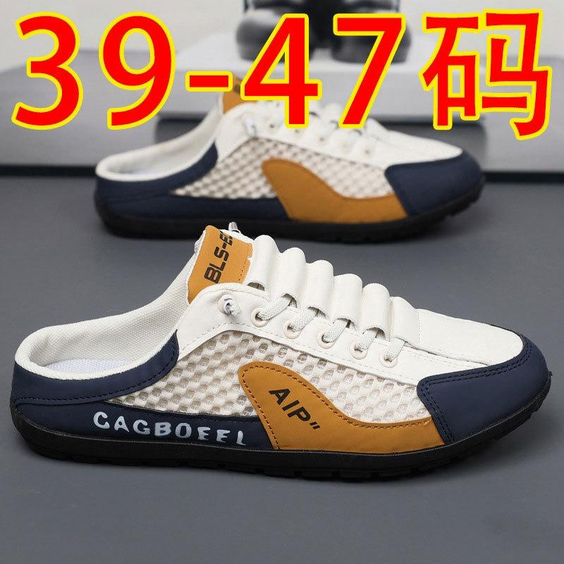 Large size bag head half tray shoes men's summer new mesh breathable one pedal lazy shoes fashionable breathable mesh shoes