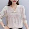 Stylish V-Neck Long-Sleeve Knit Top for Women - Loose & Slimming, Perfect for Autumn & Spring.