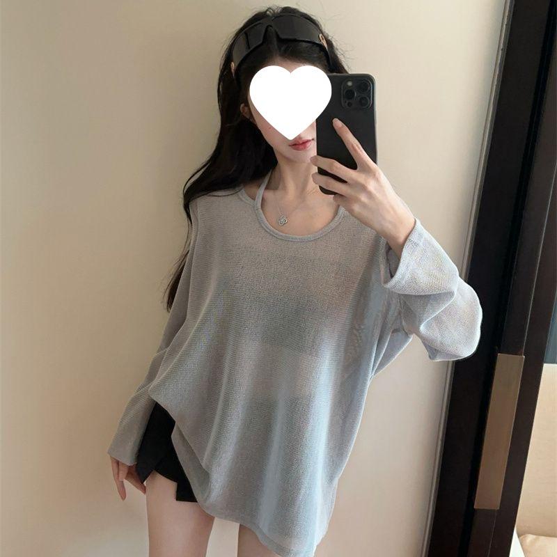 Korean Style Ice Silk Long Sleeve Slit Cover-Up T-Shirt Top for Summer