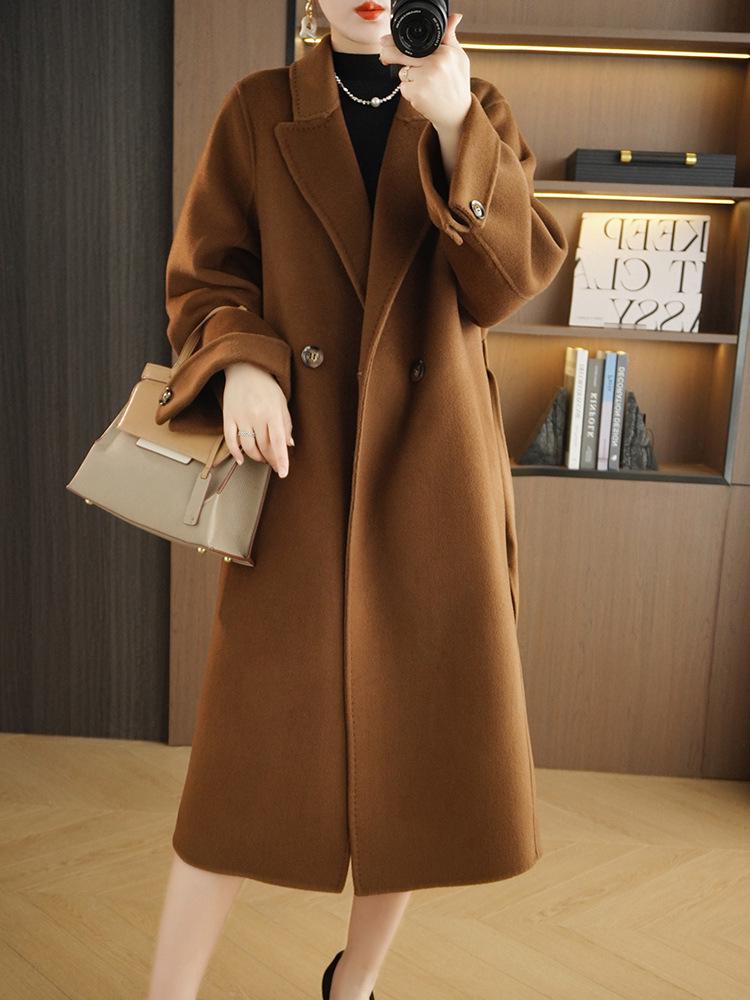 Představujeme luxusní doplněk vašeho podzimního a zimního šatníku: Tento dámský vlněný kabát střední délky je ušitý z prémiového oboustranného kašmíru v hřejivém karamelovém odstínu.. Navrženo pro elegantní, štíhlý střih, má siluetu stahující pas pro zvýraznění vašich křivek.. Izolovaná konstrukce kabátu zajišťuje teplo v chladných dnech, zatímco jeho dlouhé rukávy a přizpůsobený výstřih dodávají nádech elegance.. Jednobarevný vzor poskytuje nadčasovou sofistikovanost a praktické kapsy nabízejí praktičnost.. Ideální pro každou příležitost, tento kabát hladce kombinuje styl a funkci pro moderní ženu.