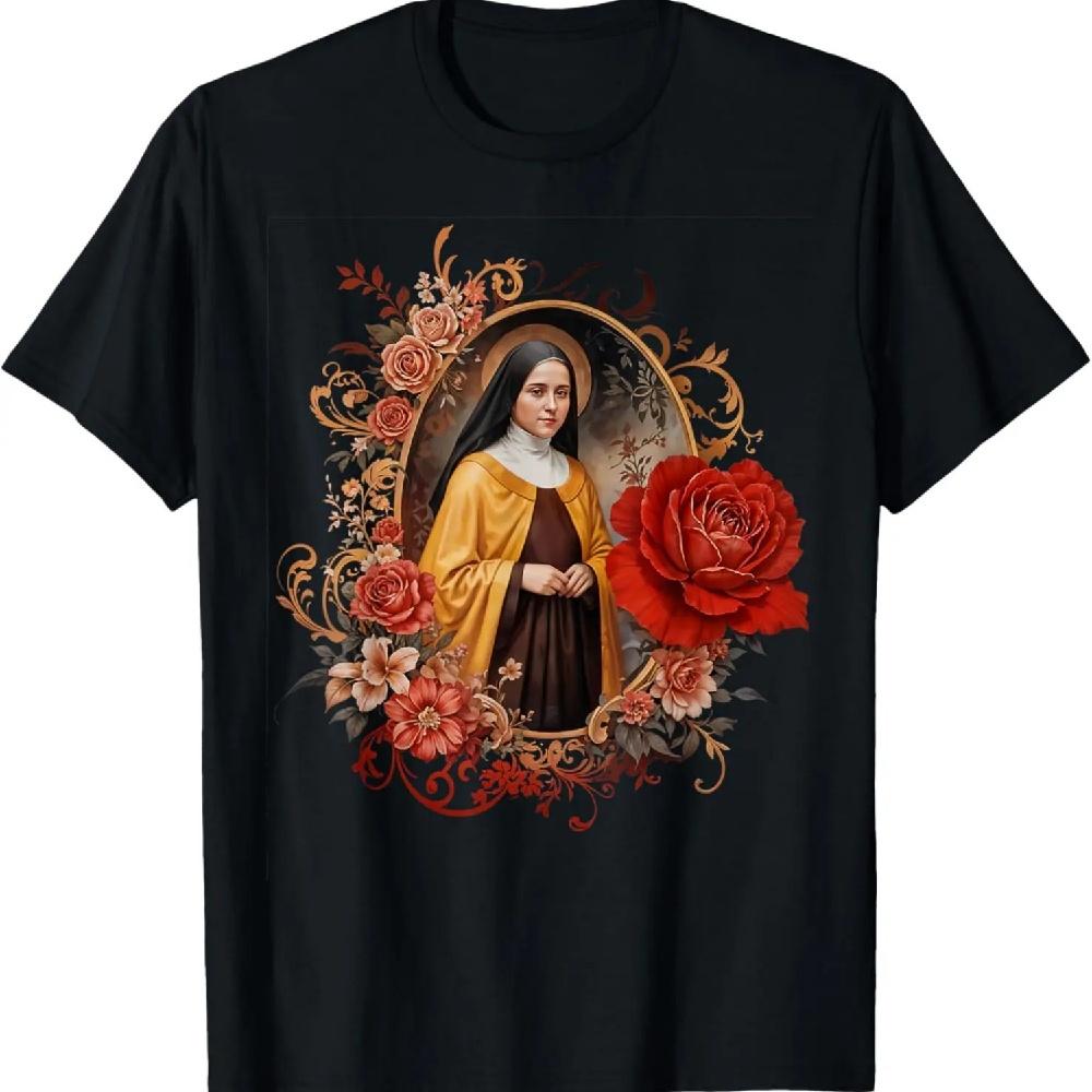 St Therese of Lisieux Little Flower Saint Roses Catholic Art T-Shirt
