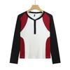 Elevate your seasonal wardrobe with this stylish slim-fit long-sleeve top, perfect for both spring and autumn. Crafted entirely from soft, breathable cotton, this top ensures comfort and durability. The solid color pattern adds a touch of elegance and versatility, making it ideal for various occasions. Featuring a chic half-open collar design, this top subtly enhances your neckline for a flattering look. With its sleek silhouette and classic design, it's a must-have piece for transitional weather.