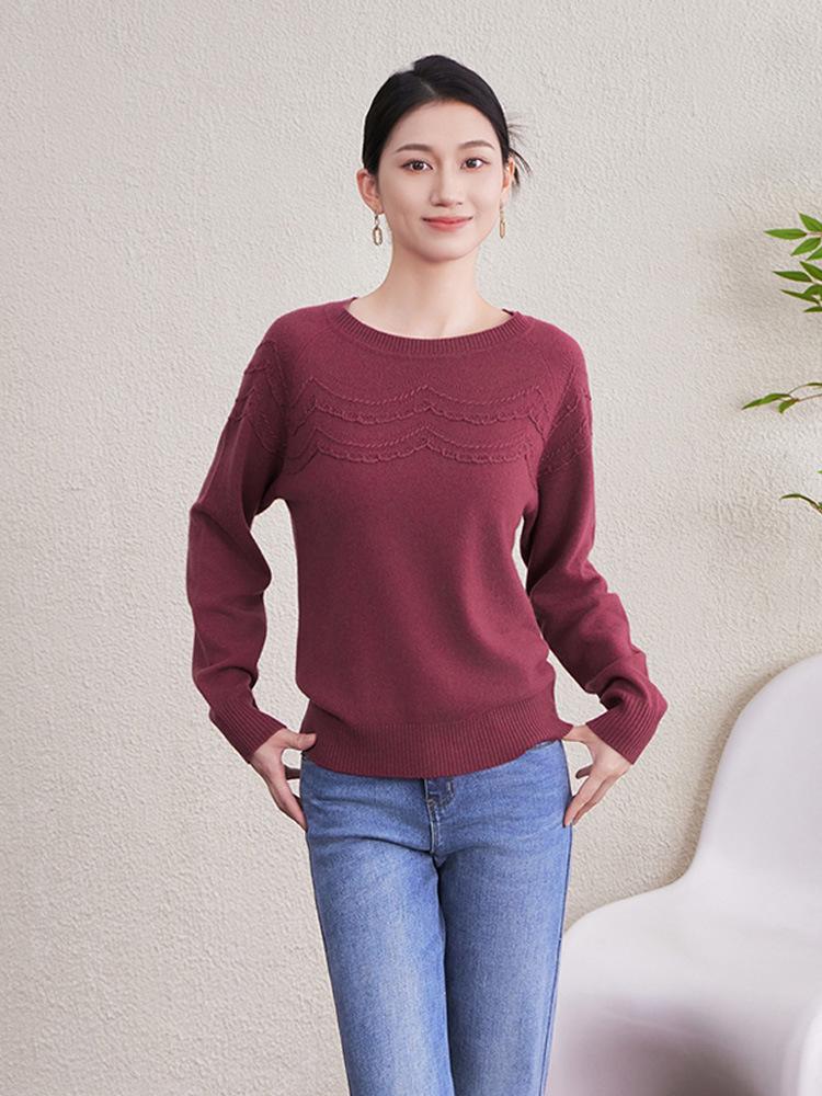 Women's Soft Wool Round Neck Knit Sweater - Versatile, Skin-Friendly, Hand-Crocheted