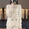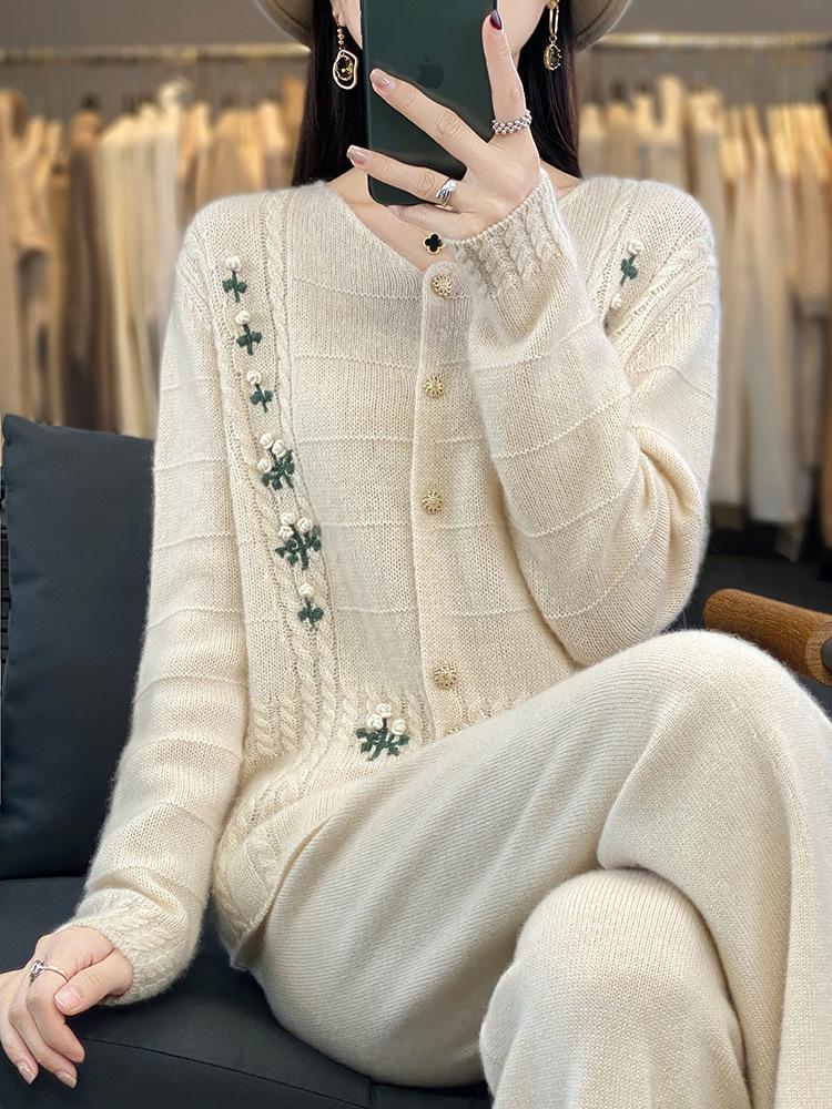 Experience the perfect blend of style and comfort with this high-design wool cardigan. Crafted from premium wool material, this cardigan offers a cozy and lightweight feel, ideal for spring and autumn. The round neckline and long sleeves add an elegant touch, while the intricate floral embroidery enhances its aesthetic appeal. Its thin thickness ensures a breathable fit, making it a versatile addition to your wardrobe that effortlessly elevates any outfit with a touch of Korean-inspired fashion.