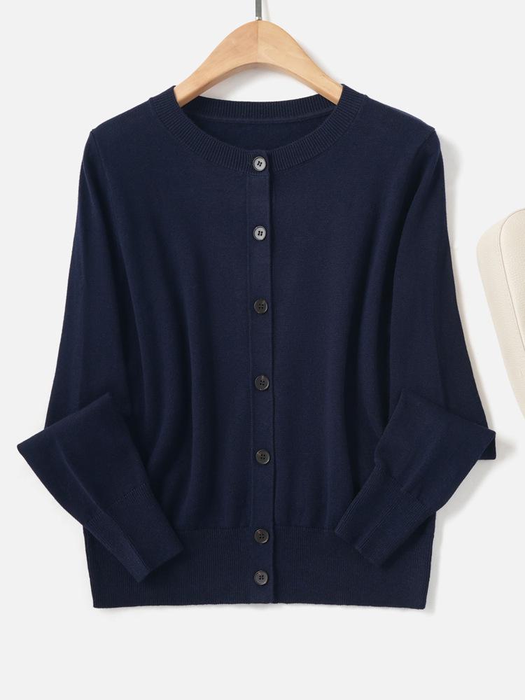 Objevte nadčasovou eleganci tohoto minimalistického pleteného kardiganu, navrženého pro náročnou ženu.. Tento svetr, vyrobený z luxusní směsi 95% bavlny a 5% kašmíru, slibuje pohodlí i styl.. Jeho jednobarevný vzor a tenká tloušťka z něj činí všestranný kousek, který lze obléknout formálně i neformálně pro jakoukoli příležitost.. Tento kardigan s ležérním kulatým výstřihem a dlouhými rukávy je dokonalým doplňkem vašeho podzimního šatníku a nabízí jak teplo, tak šik, decentní vzhled.