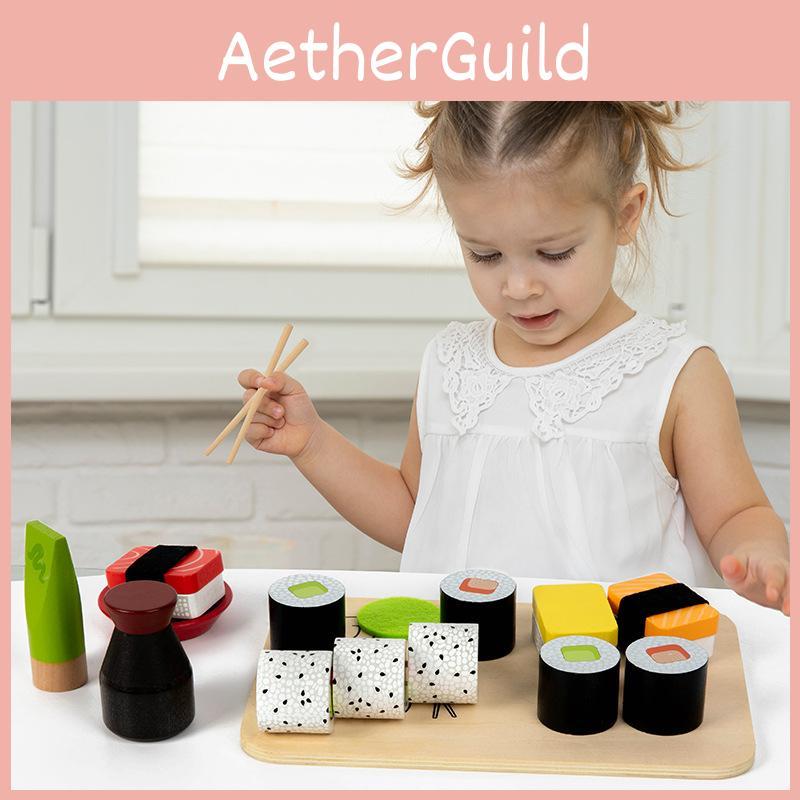 Kitchen Play Pretend Toy Wooden Sushi Cake Children Learning Creative Play Gift