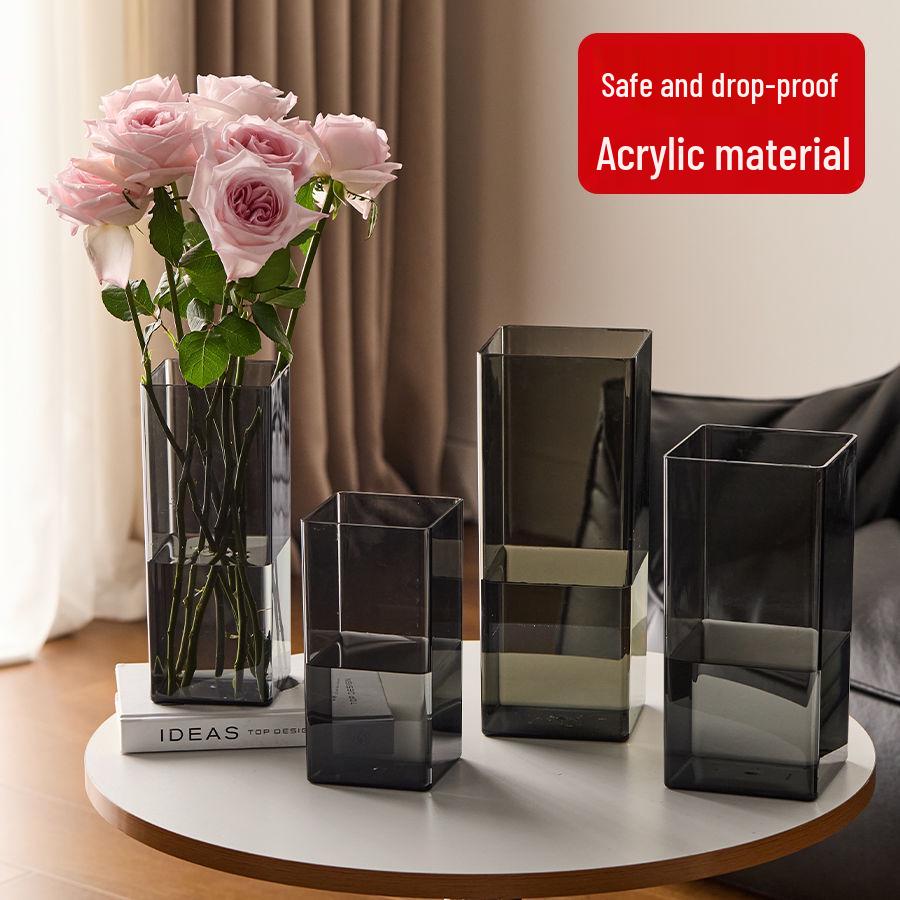 Transparent Acrylic Square Vase, Drop-Proof, for Flower Arrangements, Lucky Bamboo, and Elegant Decor in the Living Room