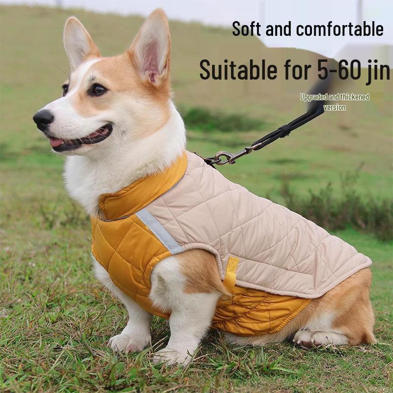 Teplý zimní psí kabát s trakční přezkou pro střední až velké psy: Zlatý retrívr, Border kolie, Korgi