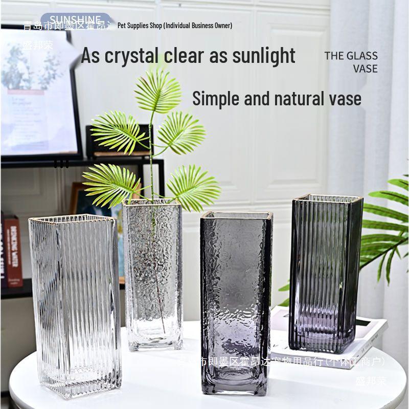 Thickened Square Glass Vase for Fresh Flowers - Elegant Hydroponic Floral Container for Living Room & Dining Table Decor
