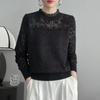 Women's Lace Knit Sweater Long-sleeve Loose Knitwear Solid Color Pullover Knit Top Spring Autumn
