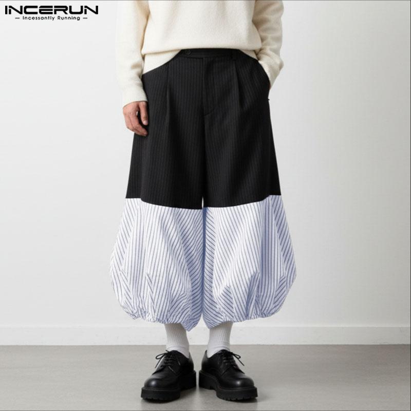 INCERUN Men Zip-up Waist Casual Striped Long Baggy Lantern Pants Trousers