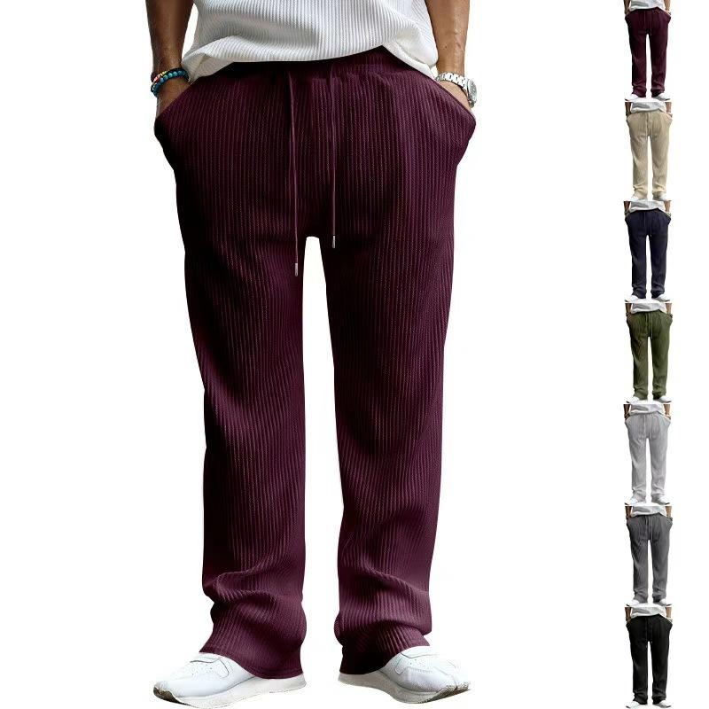 Spring and Autumn Men's Casual Long Pants Premium Loose Straight Pants Wear Striped High Waist Wide Leg Pants