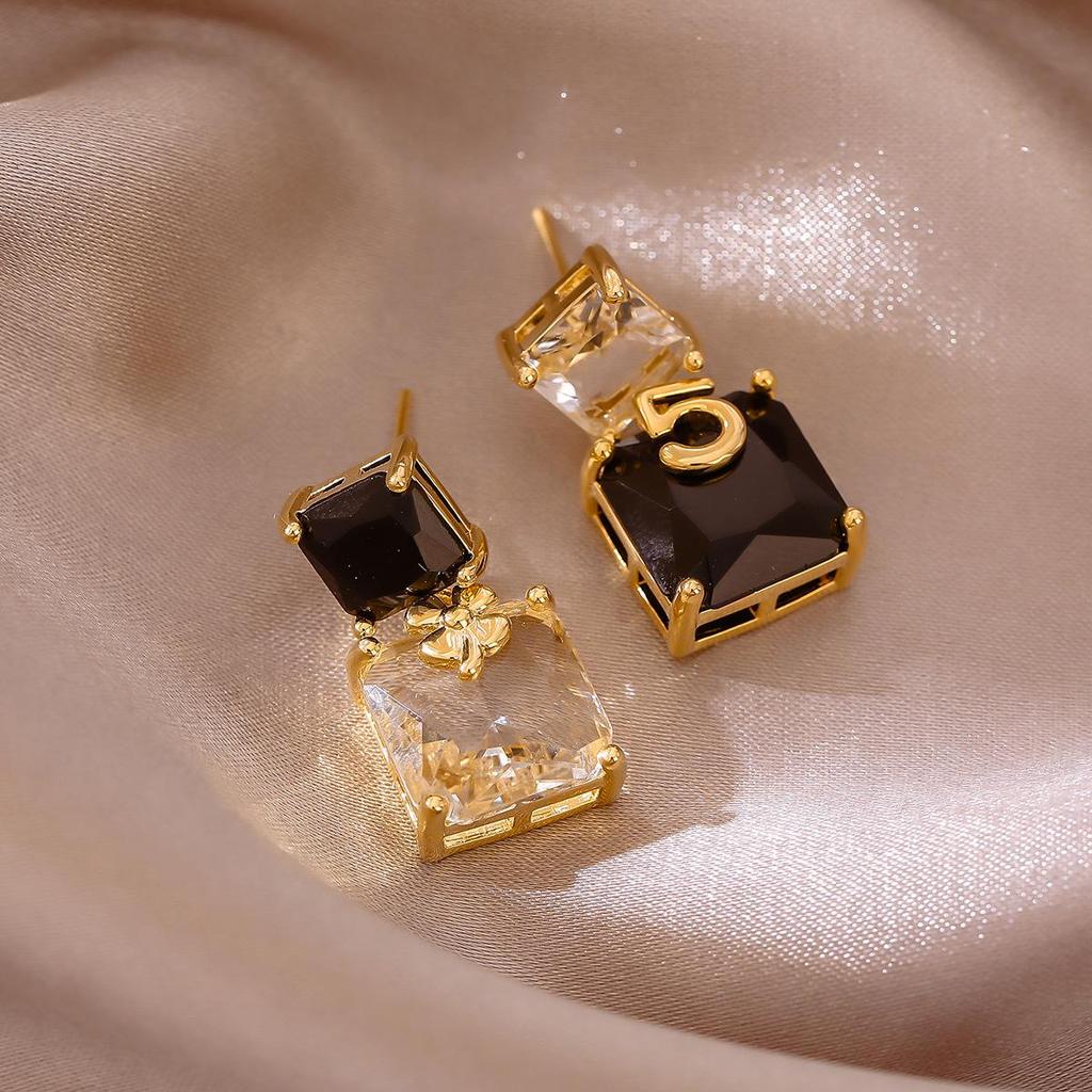 Elegant Asymmetrical Drop & Square Stud Earrings: Light Luxury Fashion for Women