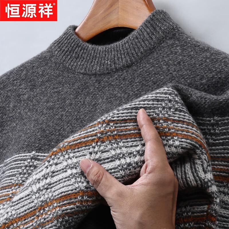 Hengyuanxiang Men's Thick Pullover Round Neck Wool Blend Sweater