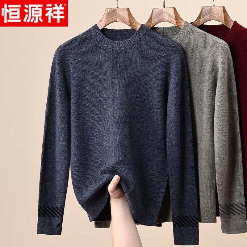 Hengyuanxiang Men's 100% Pure Wool Round Neck Sweater