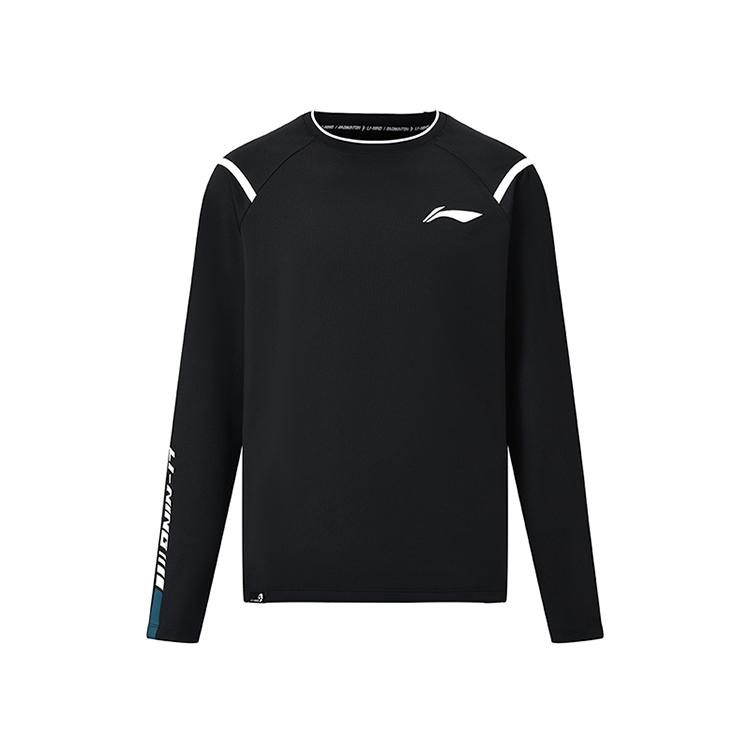 Li-Ning Personalized Printed Color Block Round Neck Casual Sports Long Sleeve T-Shirt Unisex Tops Black ATLU179-1