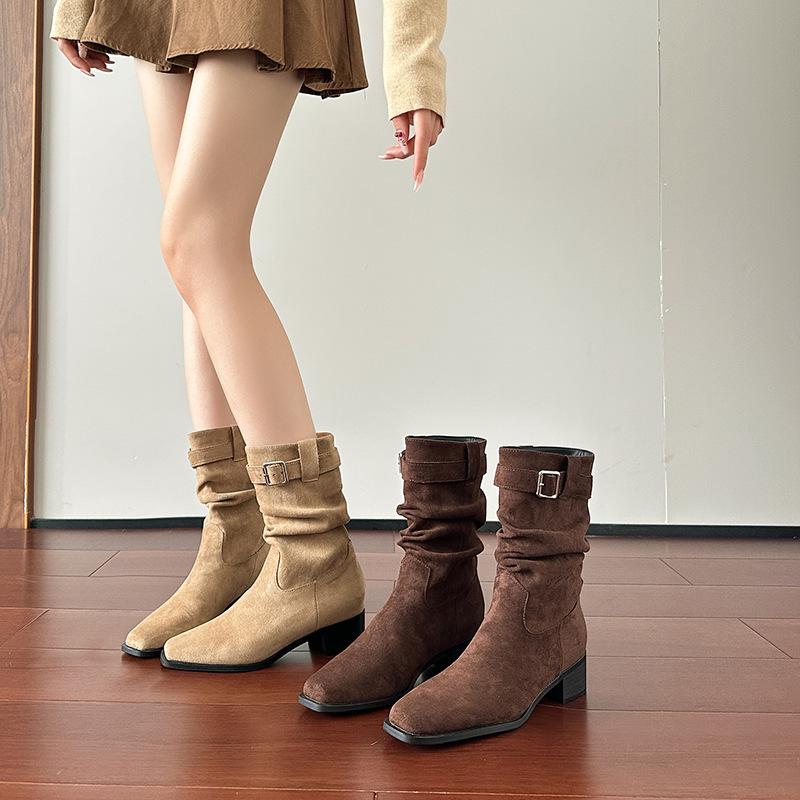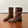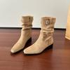 Autumn and winter new retro suede short boots women's western cowboy boots women's thick heel and short tube stacking boots