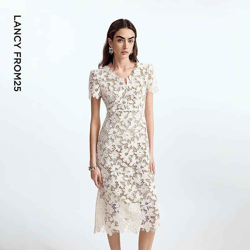 LANCY Elegantní šaty s výstřihem do V, krajkovými výřezy a slim-fit střihem, poloficiální