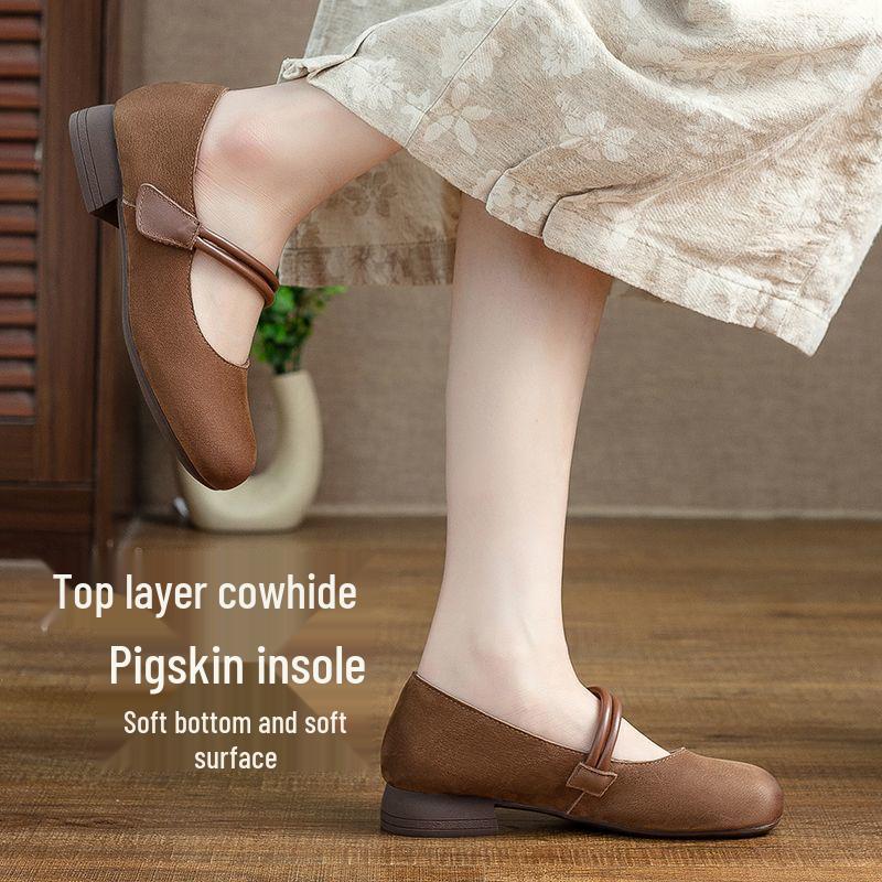 Women's Retro Genuine Leather Mary Jane Shoes - Soft Sole, Lightweight, Flat Bottom, Perfect for Spring and Autumn.