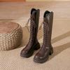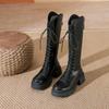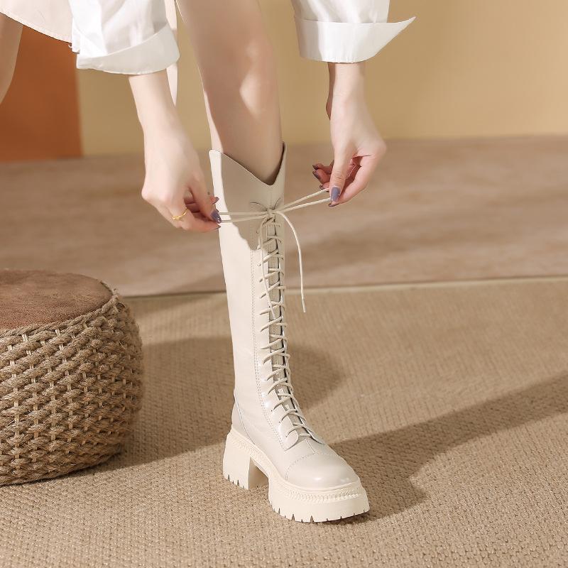 White boots women's winter new platform knight boots thick heel lace-up boots women's boots versatile women's shoes