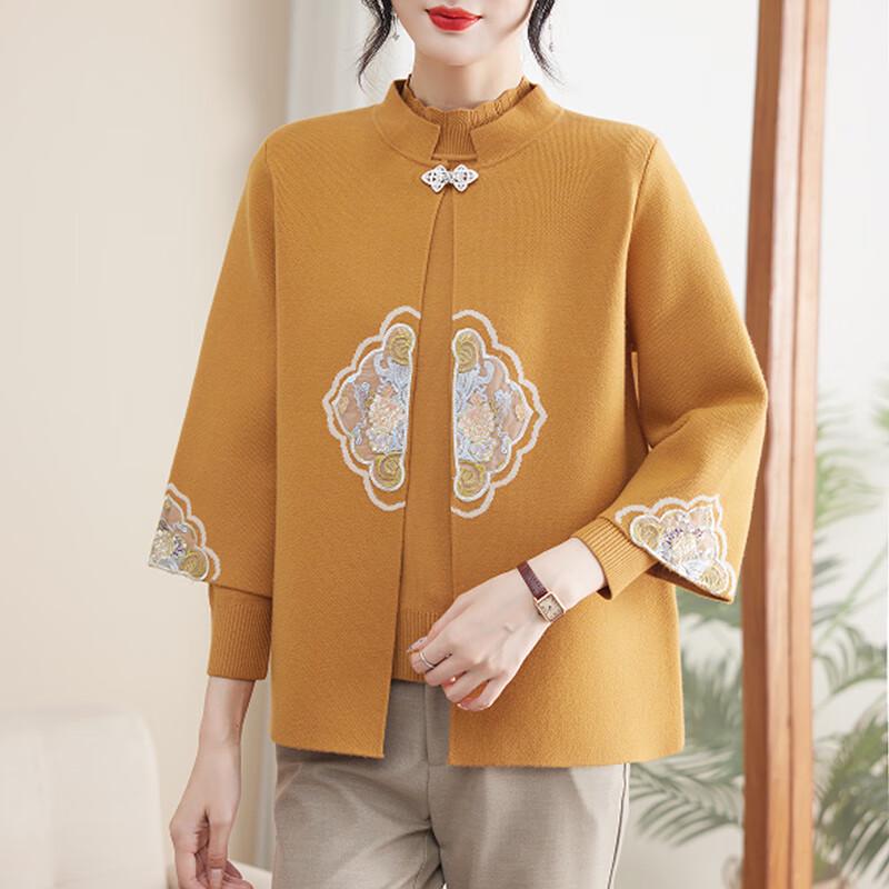 Xuexi Mom's Chinese Style Knitted Cardigan Two-Piece Set