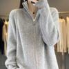 Dámský silný pletený kardigan na zip - Volný, ležérní styl, univerzální svetr z umělé vlny
