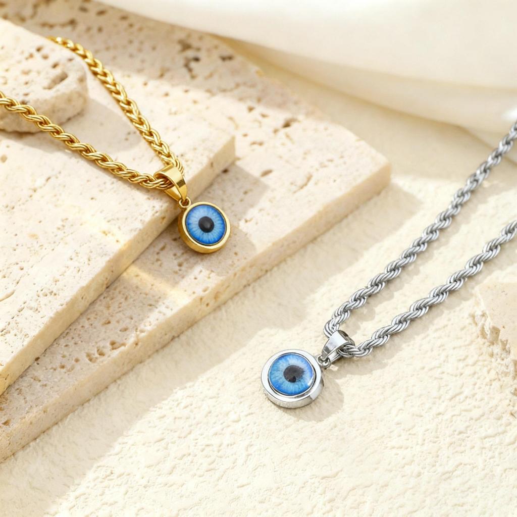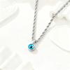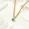 Titanium Steel Rope Chain Necklace with Blue Evil Eye Pendant & 18K Gold Finish