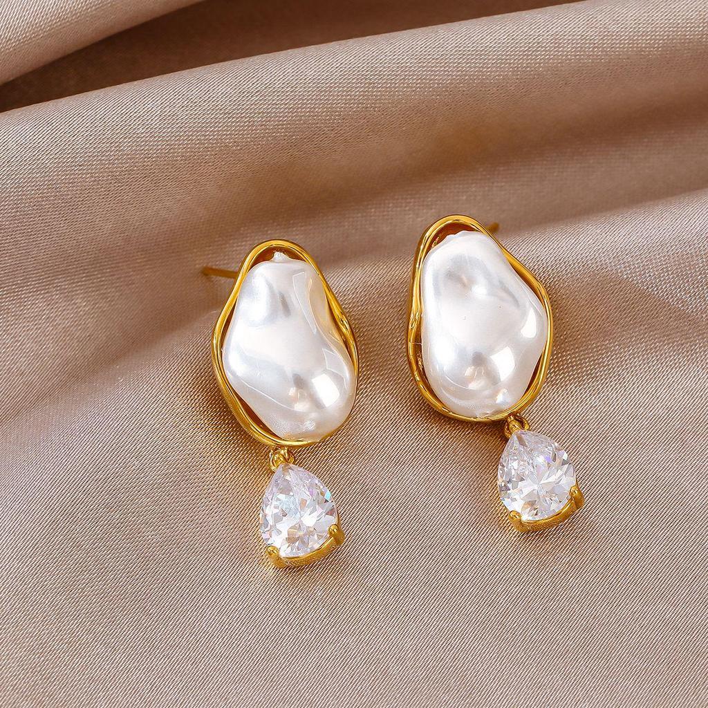 Elegant Teardrop Pearl Earrings: Versatile Korean Fashion with Zircon Inlay