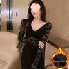 Women's Long-Sleeve V-Neck Lace Base Layer - Fleece-Lined/Unlined Autumn & Winter Sexy Hollow Fashion Top