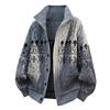 Autumn and Winter Fashionable Lapel Sweater Cardigan Men's Knitted Loose Rhombus Jacket