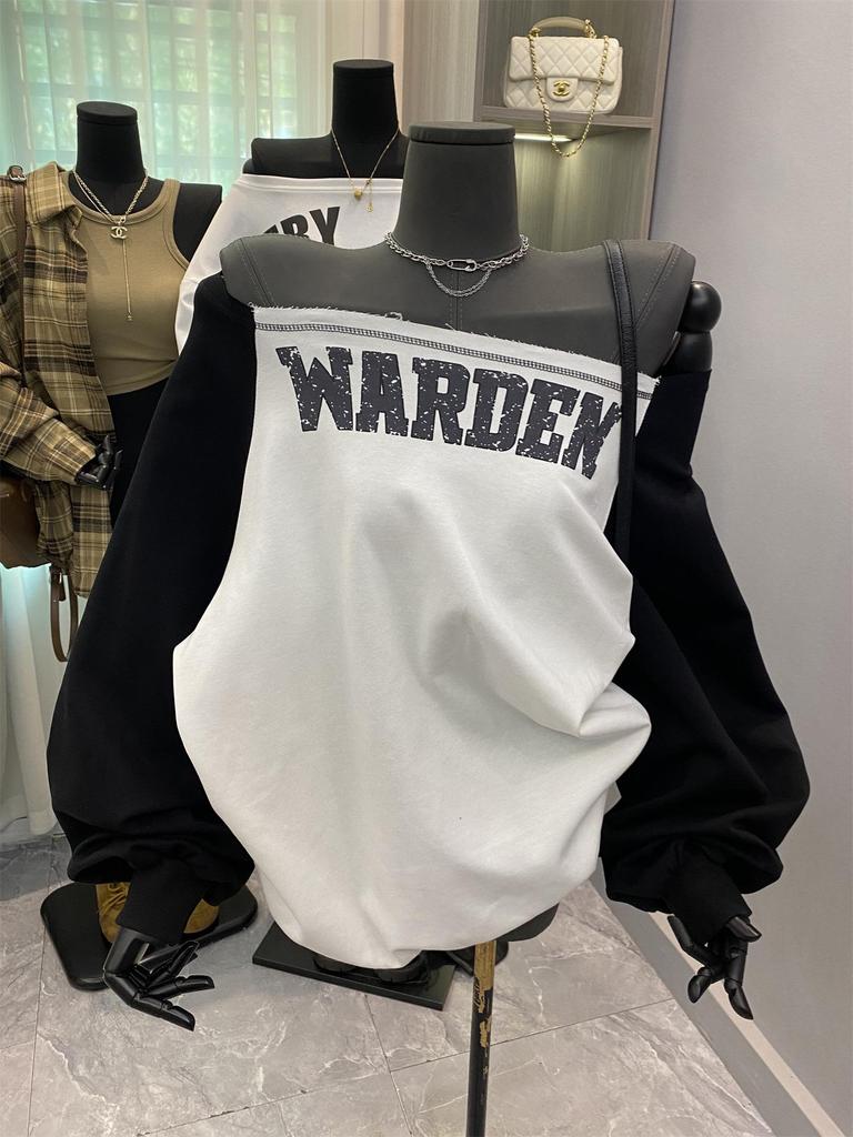 Korejská barevně blokovaná mikina s dlouhým rukávem na zavazování se syrovým okrajem pro ženy