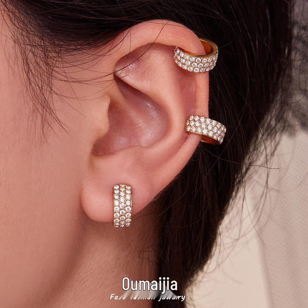 Oumeka Zlatem plátovaná náušnice zirkonového diamantu 18K - Nerezová ocel, která nebledne