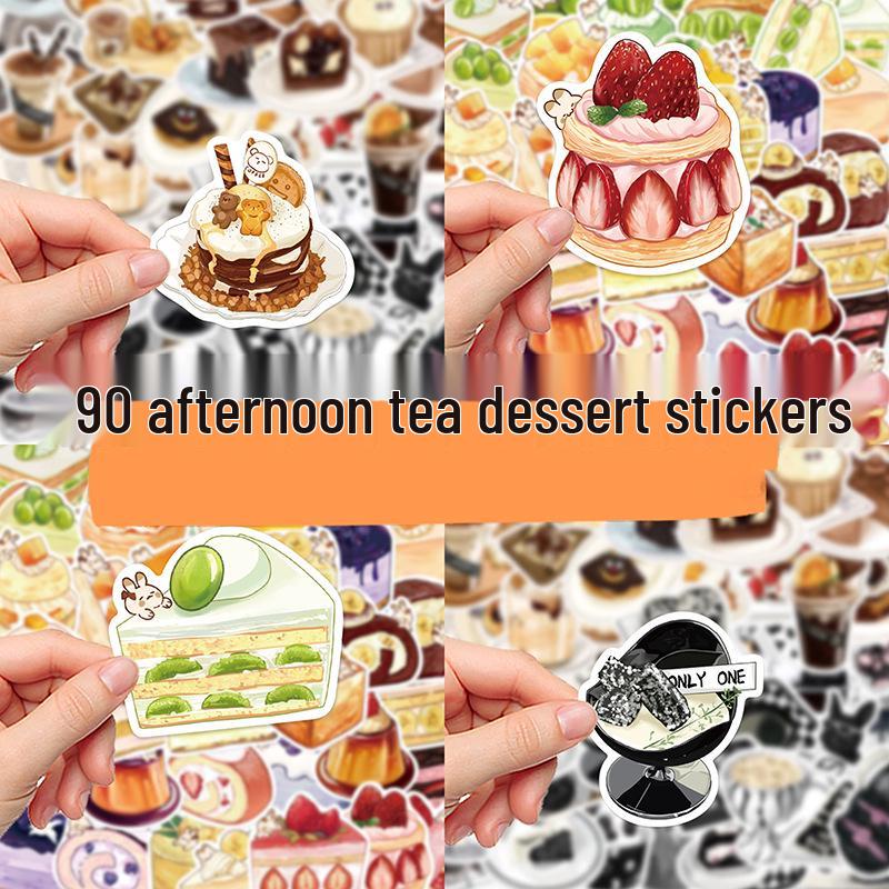 90 Cartoon Dessert Stickers: Cute Afternoon Tea Sweet Treats for Phone Cases, Journaling, and Suitcases.