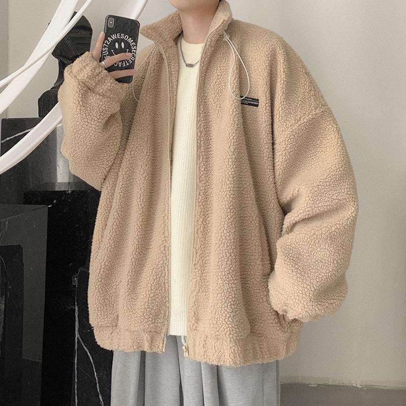 Men's Lambswool Stand Collar Cotton-Padded Jacket - Thickened and Warm for Winter