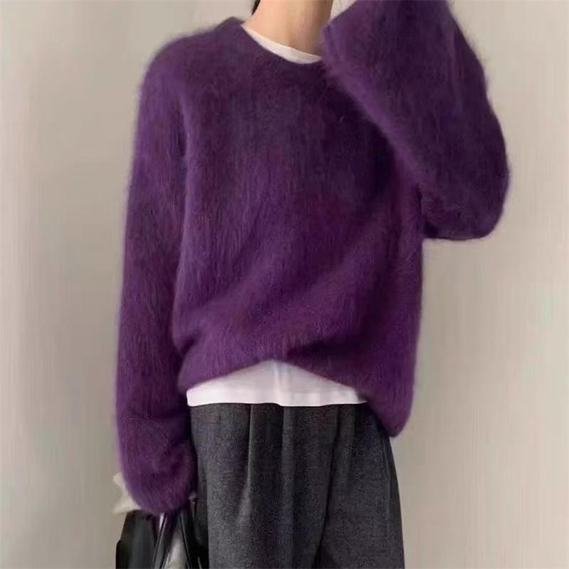 Měkký a nadýchaný svetr pro ženy k nošení ven na podzim a v zimě, s volným a ležérním stylem