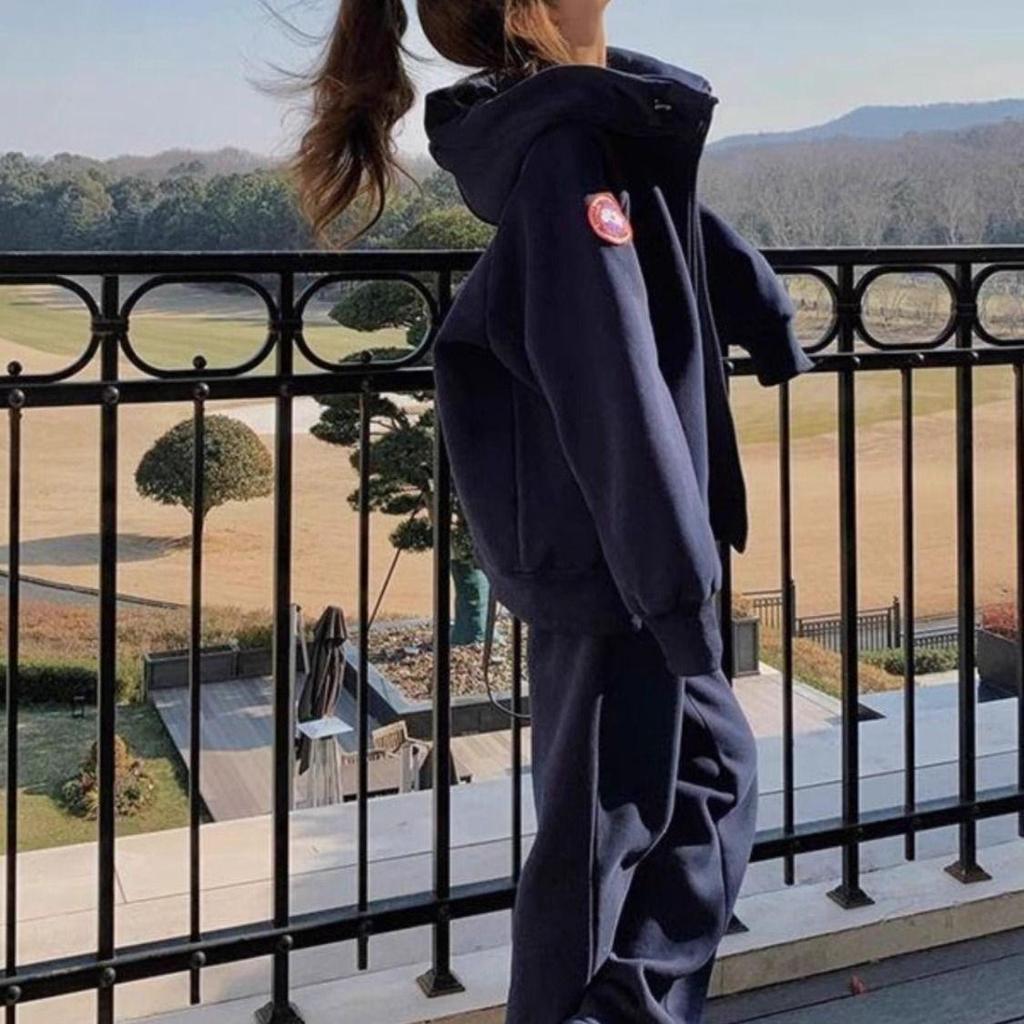 Dvoudílná sada nadměrné velikosti, korejská ležérní mikina na zip a volné kalhoty