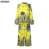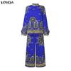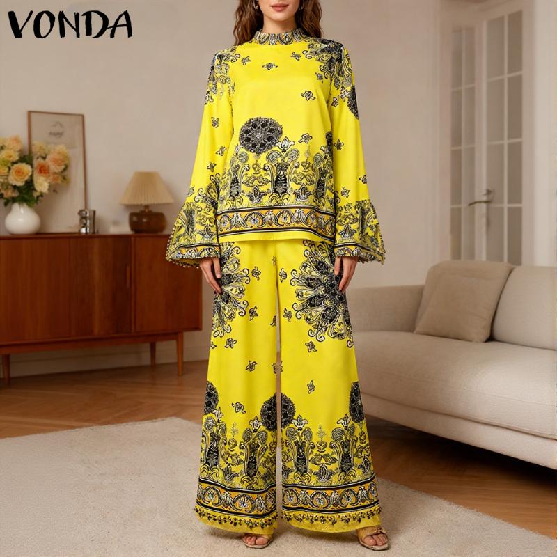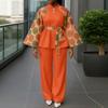 Features:A two piece set of a stand up collar, long sleeved, ethnic style printed blouse and long pants