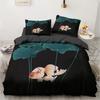 Green Lotus Leaf Black Duvet Cover Cartoon Goldfish for Kids Teens Adults Summer Theme Quilt Cover for Bedroom Decorations Queen