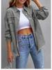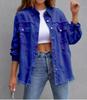 Women's 2025 European & American Solid Color Ripped Denim Jacket - Loose Fit, Long Sleeve