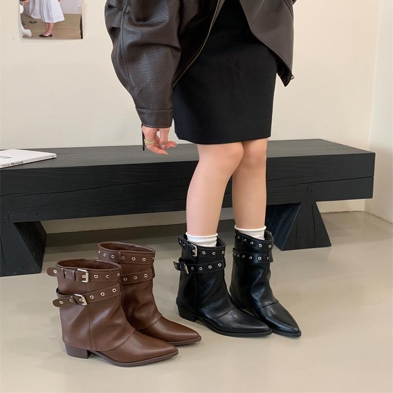 American Spice Girls Belt Buckle Pants Boots Short Boots Women's Boots 2025 Early Autumn New Niche Design Short Boots Western Boots