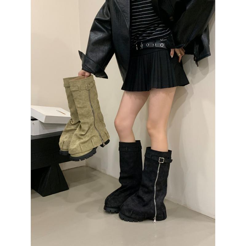 But knee-thin knight boots stacked boots 2025 new small height-increasing trouser boots