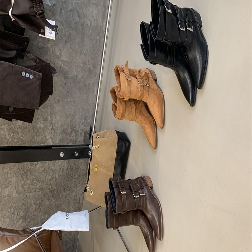 2025 autumn and winter new thick heel western boots retro belt buckle knight boots brown medium boots women's boots locomotive boots