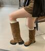 Brown rivet high boots 2025 autumn and winter new sleeve locomotive boots retro western cowboy boots women look thin